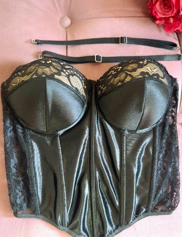 Corset de saten elastizado y puntilla, con taza soft, escote Balconette